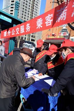 從2月21日起,首度在百貨大樓站、唐山西站、廣場(chǎng)站、北環(huán)樞紐站等市區(qū)客流量密集的站點(diǎn),設(shè)立咨詢臺(tái),懸掛“提升公交服務(wù)乘客滿意度調(diào)查”條幅,工作人員頭戴小紅帽,身披綬帶,為過(guò)往乘客發(fā)放“公共交通乘客滿意度調(diào)查表”,一位乘客填完調(diào)查表后,感概的說(shuō):“這幾年咱們唐山的公交發(fā)展變化真的很大,綠色環(huán)保的空調(diào)車越來(lái)越多了,冬天不冷夏天不熱。尤其是去年的世園會(huì)夜場(chǎng)惠民直通車,從家門口到世園會(huì),兩點(diǎn)一線,又惠民又方便。”許多過(guò)往的市民也在咨詢臺(tái)向工作人員主動(dòng)索要調(diào)查表,大家都想為公交的發(fā)展獻(xiàn)計(jì)獻(xiàn)策。