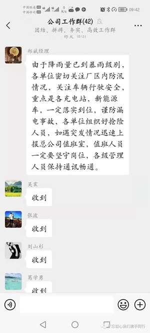 一是信息共享??偣就ㄟ^微信群、車內(nèi)監(jiān)控、GPS定位等手段,及時將線路運行情況、危險路段道路積水情況、場站排水情況等信息進(jìn)行共享聯(lián)動,以確保及時準(zhǔn)確下達(dá)工作指令。