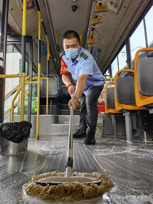 唐山公交五公司班子成員下路隊、上公交、對每一輛車的車容車貌、衛(wèi)生情況開展檢查,發(fā)現問題后隨手拿起抹布對保潔人員、司機做起清潔車廂的示范,三個路隊的路隊長更是利用所有業(yè)余時間對車輛進行大清掃。為了讓車輛清掃活動開展的更加有成效,鄭斌經理要求每隊提出一個衛(wèi)生口號,于是“人手一塊小抹布” 、“安全人人管 衛(wèi)生人人干”、“人人做整理 場站有條理 全員做清掃 車廂更美好”等口號,夾雜著汗水伴隨著職工大清掃的熱情,讓車輛衛(wèi)生清理達到了“潔”的效果。截止到目前為止,五公司完成現有202輛公交車、7個公交場站、9個發(fā)車點的衛(wèi)生百分百清理與復查整改。值得一提的是,屈莊公交車場在環(huán)境雜亂、設施設備不足的情況下,依然在總公司“四項”重點工作推進檢查中得到督導組的認可和表揚。三隊的管理人員更是在開展衛(wèi)生大清掃活動中起到了帶頭作用,還創(chuàng)造了許多衛(wèi)生清掃“小竅門”,比如馬翯書記用自行購買的吸塵器清理駕駛室內的腳踏板,防止了用水沖洗造成的電路短路不安全隱患,由李旺隊長發(fā)現并在全公司推廣使用的海綿擦代替鋼絲球擦洗,防止了過度清潔對車身造成的損壞。