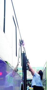提升運(yùn)營服務(wù)水平,傳遞文明城市正能量。開展全員素質(zhì)提升行動(dòng)。組織全公司干部職工參加以“忠誠、敬業(yè)、實(shí)干、奉獻(xiàn)、感恩”為主題的職業(yè)素質(zhì)培訓(xùn),累計(jì)授課11場(chǎng)次,近5000余名干部職工接受教育,為創(chuàng)城工作的落實(shí)打下堅(jiān)實(shí)的思想基礎(chǔ)。積極開展客流調(diào)查和乘客滿意度測(cè)評(píng)活動(dòng)。所屬7個(gè)運(yùn)營分公司組織管理人員深入500個(gè)公交站點(diǎn)、135條公交線路、90個(gè)居民區(qū),認(rèn)真聽取百姓對(duì)公交服務(wù)的意見建議,調(diào)查線路客流情況,制定了《公交車進(jìn)出站管理制度》,做到科學(xué)合理調(diào)整線路,安排車次,規(guī)范服務(wù),努力解決百姓反映突出的部分線路車輛間隔大、車輛越站甩客、進(jìn)站不靠邊等問題。開展“三聲服務(wù)”和找座位專項(xiàng)行動(dòng)。要求一線司乘嚴(yán)格執(zhí)行“上有迎聲、下有送聲、問有答聲”的服務(wù)標(biāo)準(zhǔn),做到積極主動(dòng)地為老弱病殘?jiān)屑氨『旱某丝驼易弧S行┸嚱M班子主動(dòng)為乘客備置了便民箱、方便袋、暈車藥、創(chuàng)可貼等便民設(shè)施,市民對(duì)公交服務(wù)的滿意度大大提升。開展車容車貌、場(chǎng)容場(chǎng)貌、站容站貌專項(xiàng)治理行動(dòng)。對(duì)2015部運(yùn)營車輛逐一進(jìn)行車況檢查、車容維護(hù)、衛(wèi)生清理,堅(jiān)持“一日一清潔,一趟一清掃,始發(fā)車內(nèi)無雜物”的標(biāo)準(zhǔn)。對(duì)場(chǎng)區(qū)衛(wèi)生和站牌站桿進(jìn)行了徹底清洗,添置分類垃圾箱137個(gè),在明顯位置張貼禁煙標(biāo)識(shí)。