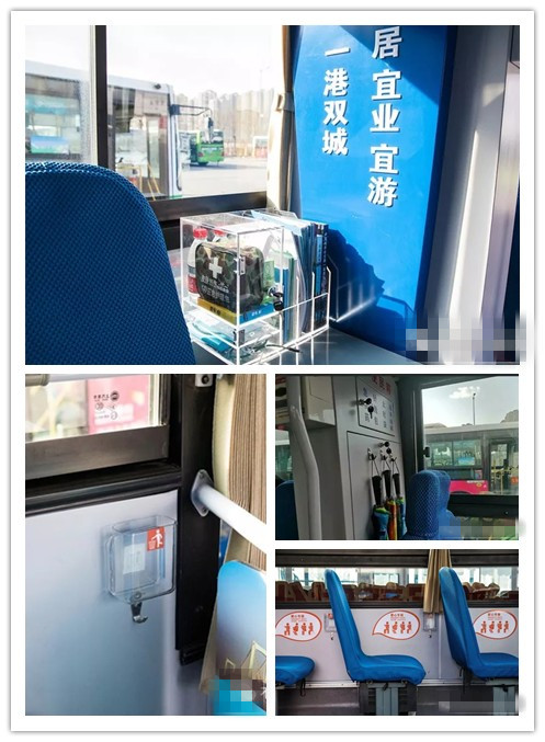 “一港雙城”示范車廂內(nèi)設(shè)置了服務(wù)小棧,內(nèi)有急救包、飲用水、手機(jī)充電寶、老花鏡、雨傘、唐山旅游宣傳圖冊等方便乘客隨時使用。在每個靠窗的座椅處,還設(shè)置了小型的垃圾收納盒和置物掛鉤。此外,駕駛員學(xué)習(xí)強(qiáng)國信息小播報,在平峰期首末站時,為乘客播報一些當(dāng)前的事實信息,豐富乘客乘車體驗。