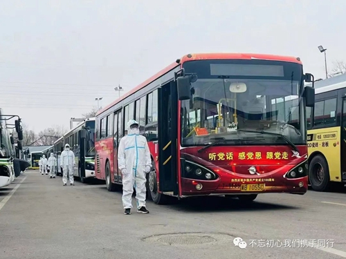 面對嚴峻的疫情防控形勢,唐山公交于3月19日迅速啟動了公司疫情防控應(yīng)急預(yù)案,總經(jīng)理劉東占帶領(lǐng)應(yīng)急領(lǐng)導(dǎo)小組成員,24小時堅守崗位靠前指揮調(diào)度,并要求:全公司無條件堅決迅速響應(yīng)市委市政府指令,高質(zhì)高效完成公司各項疫情防控工作及保障任務(wù)。與此同時,所屬基層單位的10個黨總支及48個黨支部,立即通過各種形式組建了應(yīng)急領(lǐng)導(dǎo)組織以及經(jīng)嚴格培訓(xùn)的150人常備應(yīng)急公交駕駛員隊伍,未封控小區(qū)的公司黨員領(lǐng)導(dǎo)干部堅守崗位,除做好場區(qū)日常防控、車輛技術(shù)檢測、能源補給、消毒消殺及職工健康排查任務(wù)外,隨時待命做好應(yīng)急任務(wù)響應(yīng),確保一有情況隨時拉得出、打的贏。